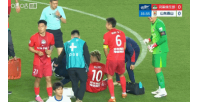 纳萨里奥在与高准翼争抢时受伤,被担架抬离球场
